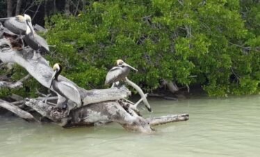 As in large parts of the state of Yucatán, you can see a variety of local species such as pelicans and flamingos